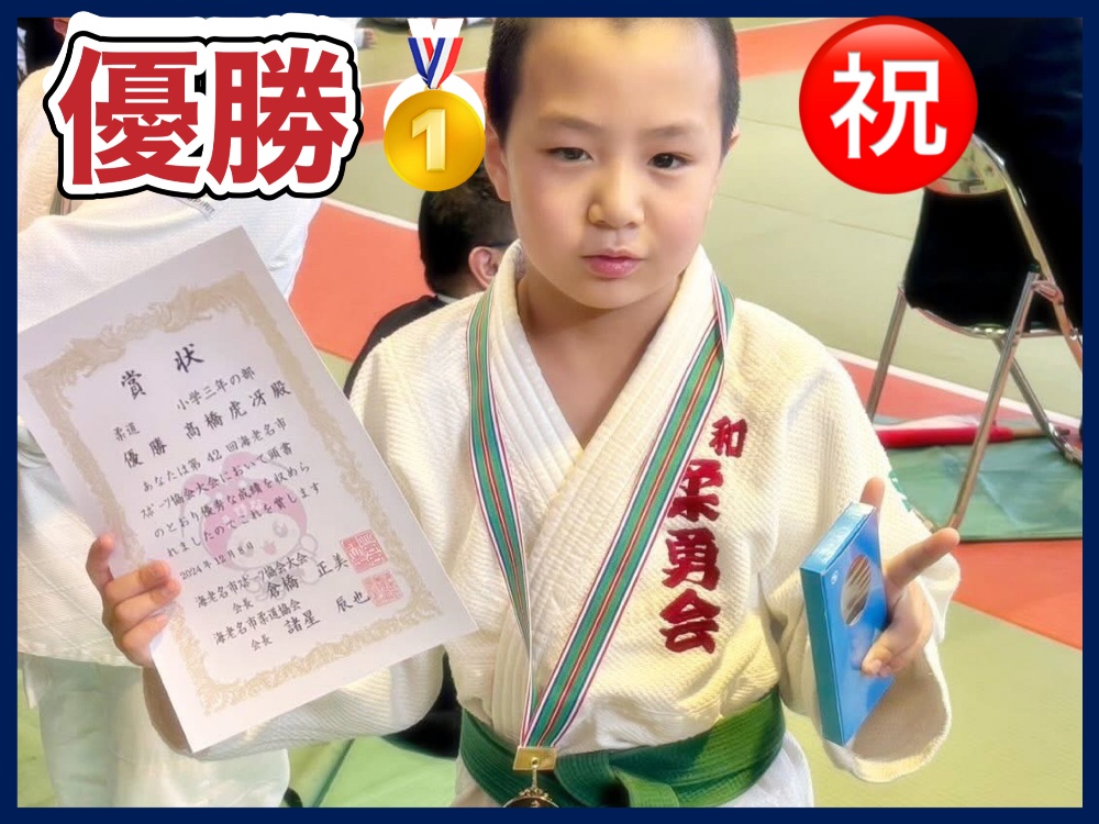 | 特典 | ・中学生になって初段になると(最短で中学2年)月謝が3000円になります。 ・初段を取得すると大和柔勇会より黒帯フル刺繍をプレゼント致します。 |